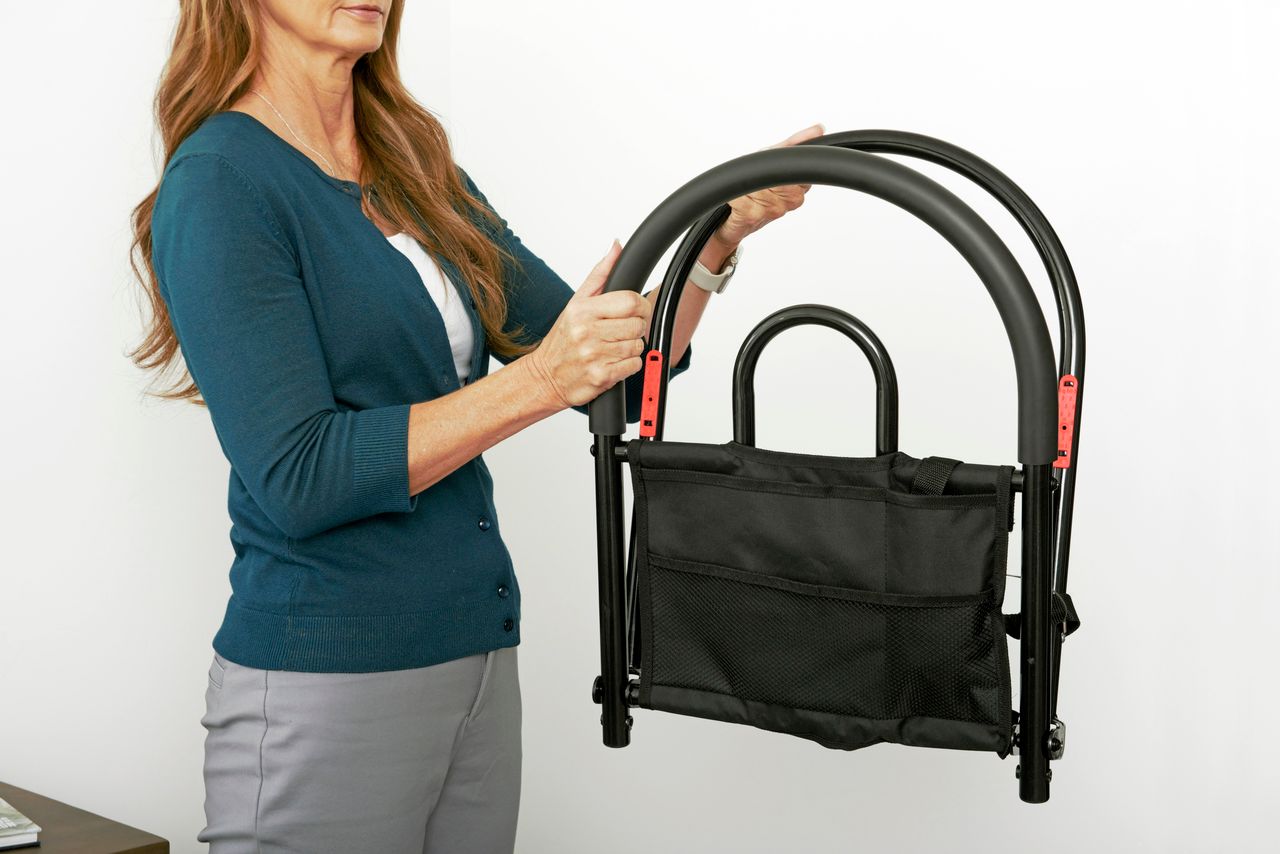 Der mobile Bettgriff für die Reise ist schnell an jedes Bett oder Krankenbett montiert. Bei dem Transport für unterwegs lässt er sich schnell und einfach zusammenklappen. Mit seiner hohen Belastbarkeit von 181 kg, kann der Bettgriff fast jeden tragen. Zusätzlich wird auch das hinausfallen in der Nacht verhindert.